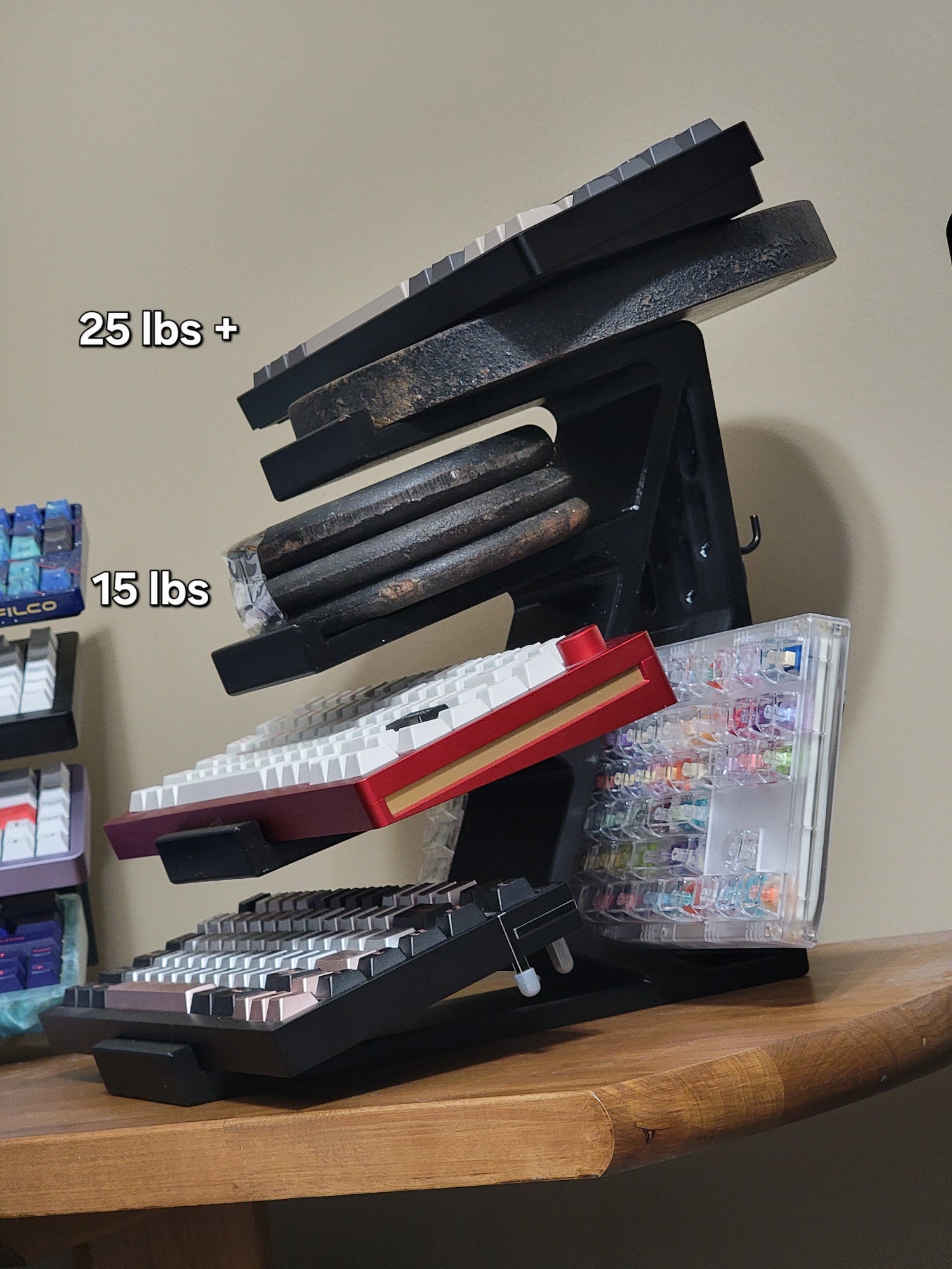 This is a keyboard stand like no other. It holds 5 boards and displays them beautifully. Not only that, but it's strong as all get out, as I've got some really heavy boards on mine. The heavier boards can go on any shelf, thing was expertly crafted, engineered, and designed. I can't recommend this for your keyboards enough!inToit