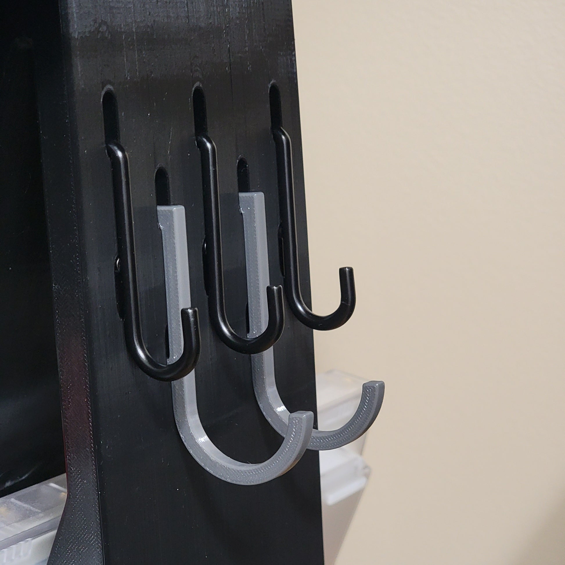 Note: Make sure to pay attention to the spacing on the back of the stand versus the spacing necessary for any non Clackify accessories. ALSO, note that any Skadis hooks that twist are not compatible with this stand.