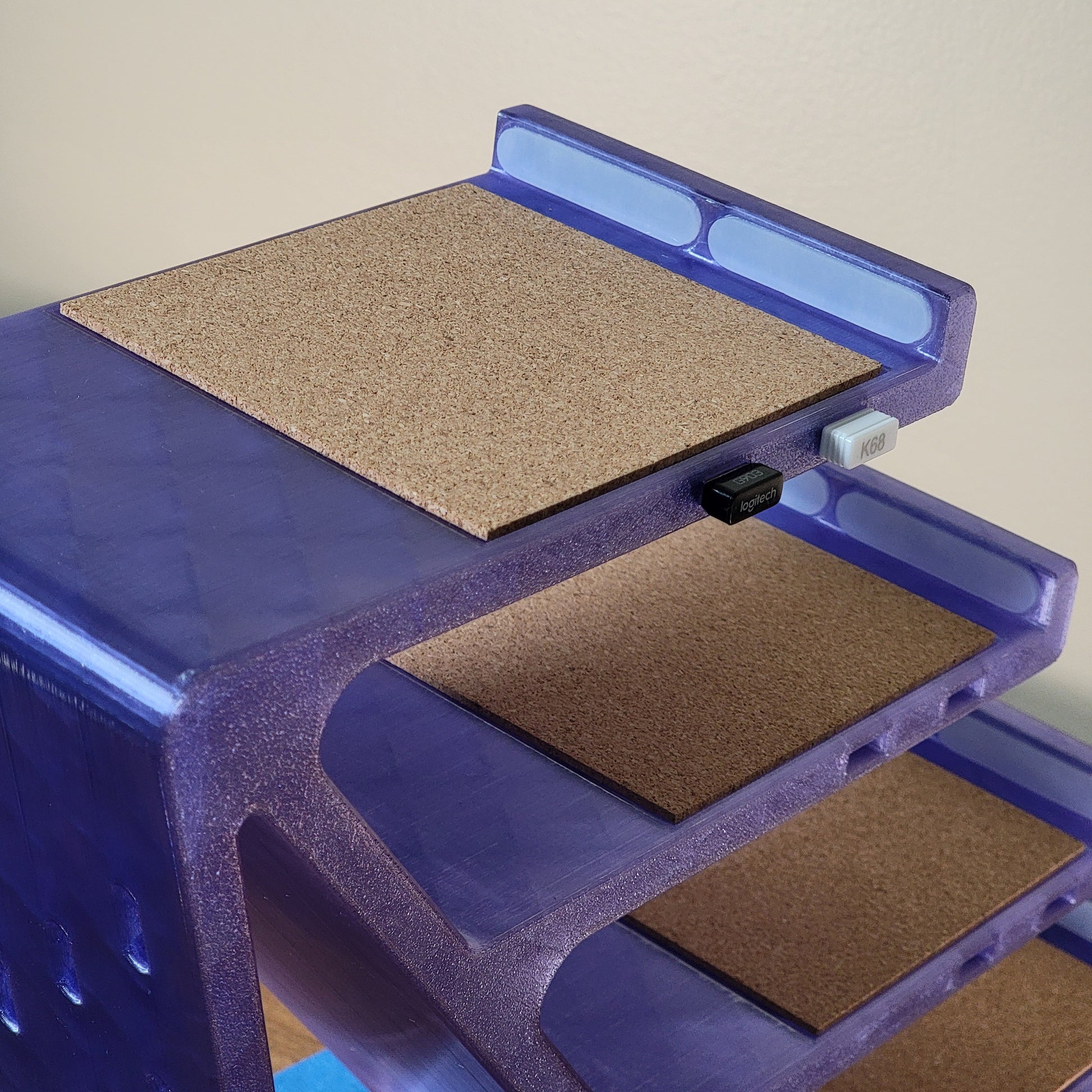 This is by far the best keyboard shelf on the market. The Galaxy color looks even better irl. At first I was nervous about putting heavy boards on a 3D printed stand, but it’s completely sturdy and the bumpers add extra protection.
