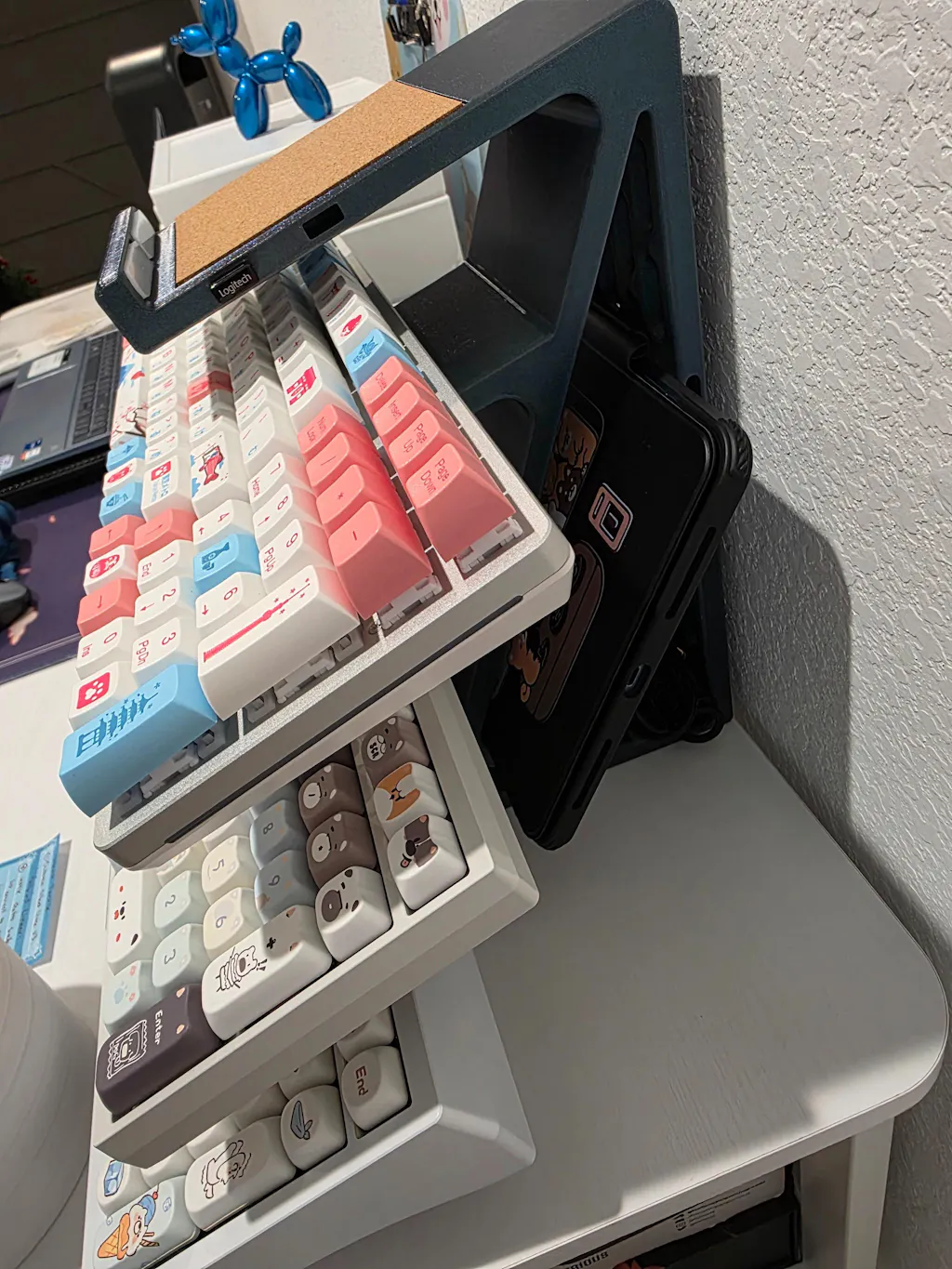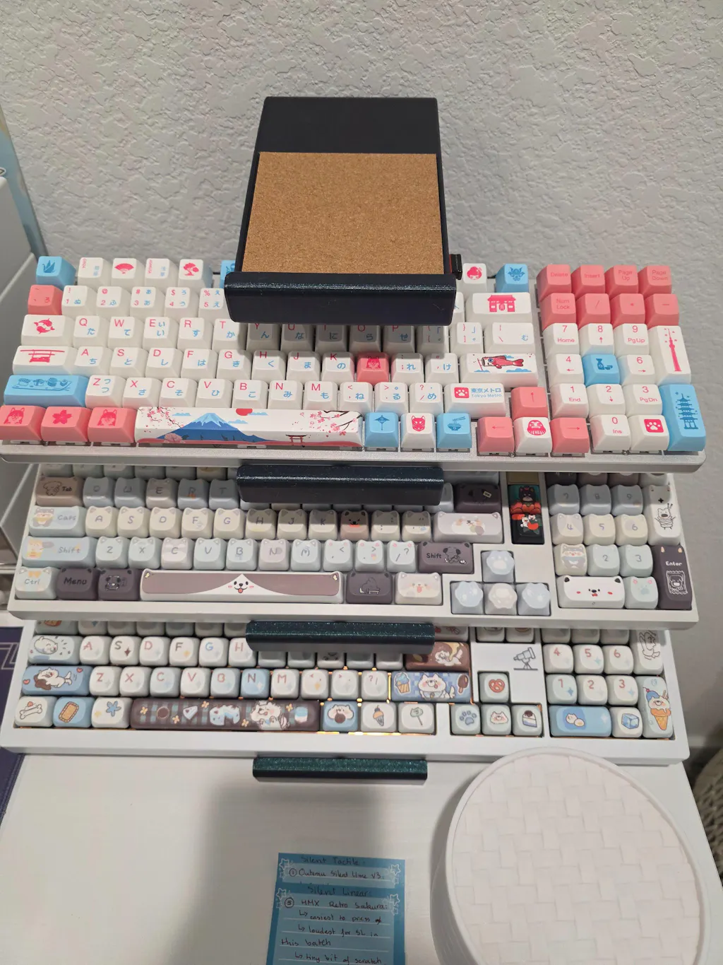 A 4-tier keyboard display stand designed for collectors and enthusiasts who need a better way to store, protect, and show off their boards. Each stand holds up to 5 keyboards (4 shelves plus an internal slot) with cork pads and silicone bumpers on every surface to keep your boards safe. The bottom of the stand has nonslip silicone to keep everything locked in place.